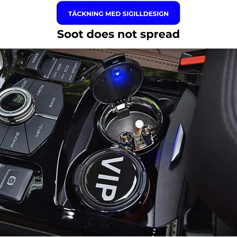 Tryck en gång så glider locket tyst upp; en mjukblå LED-lampa hjälper dig att hitta rätt, så att du aldrig behöver leta efter askkoppen under nattliga bilresor.