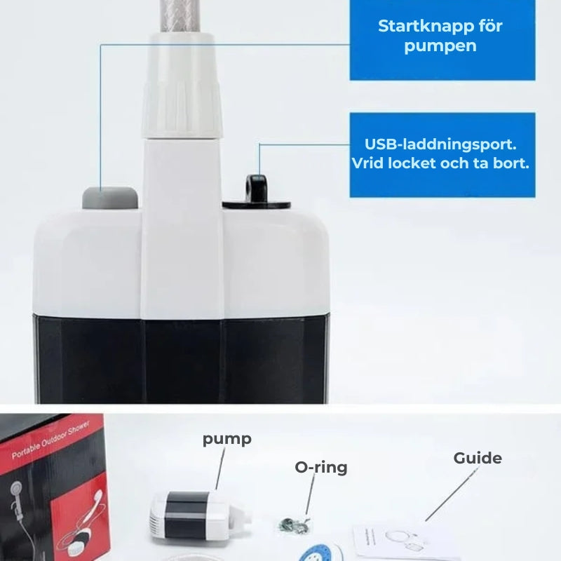đDen perfekta lösningen för utomhusbad. Njut av en skön dusch vart du Ă€n befinner dig.