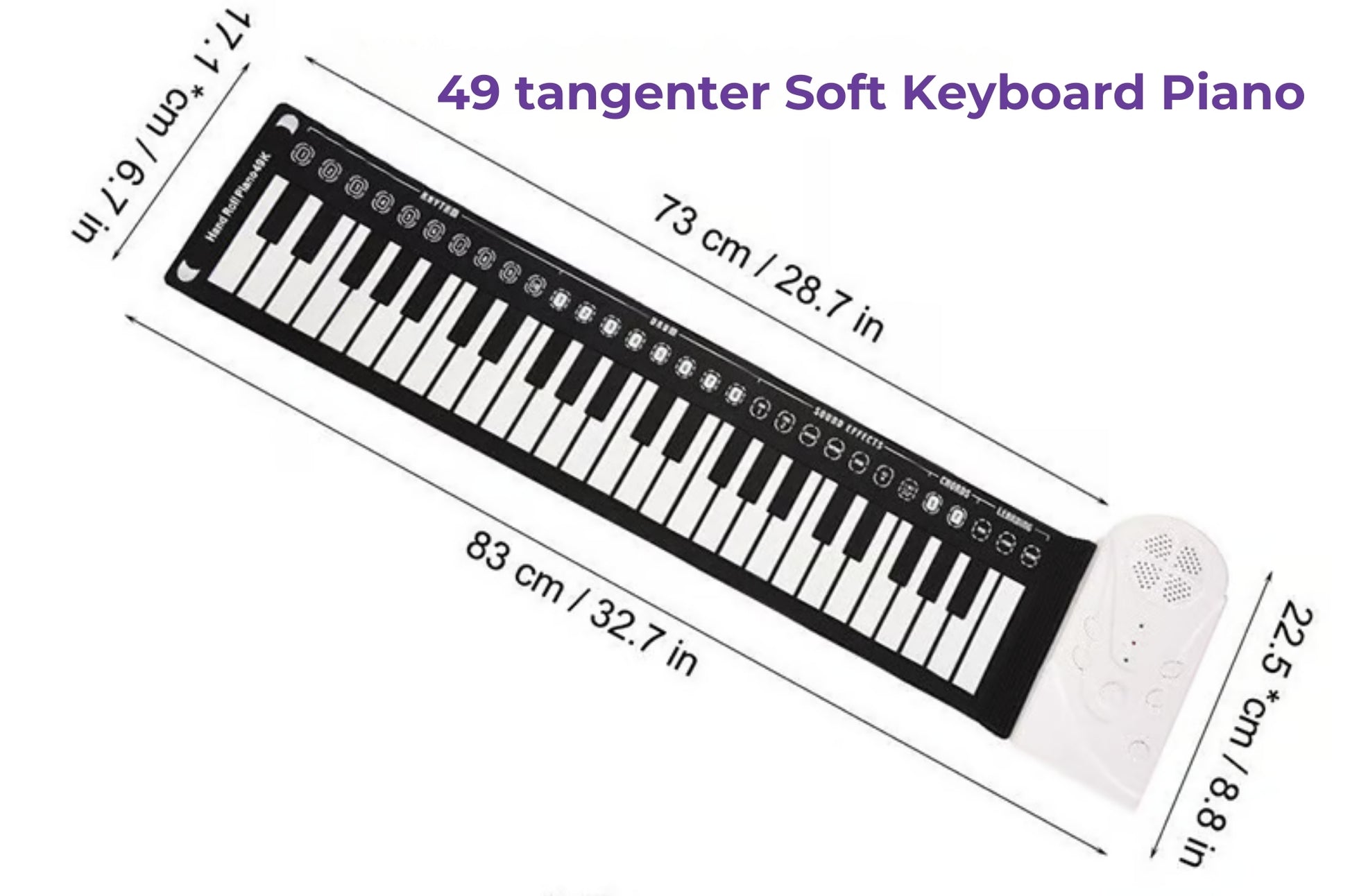 Spela musik var och när du vill. Detta bärbara upprullningsbara piano är perfekt för alla som vill njuta av musik när och var som helst. Hemma, utomhus, på resan eller på en fest – rulla ut den och visa omedelbart ditt musikaliska talang. Tack vare den lätta och flexibla designen kan du enkelt ta med den överallt.