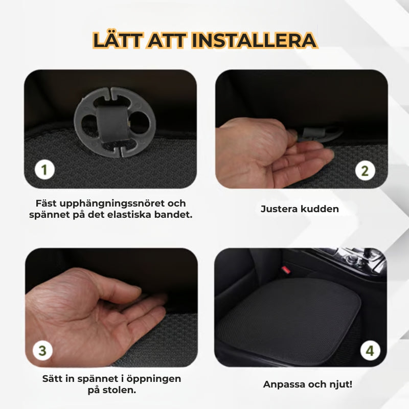Stolsöverdraget ger extra komfort under körning. Det mjuka men stadiga materialet stöder rygg och sittdel, vilket gör långa resor bekvämare och kan minska ryggbesvär.