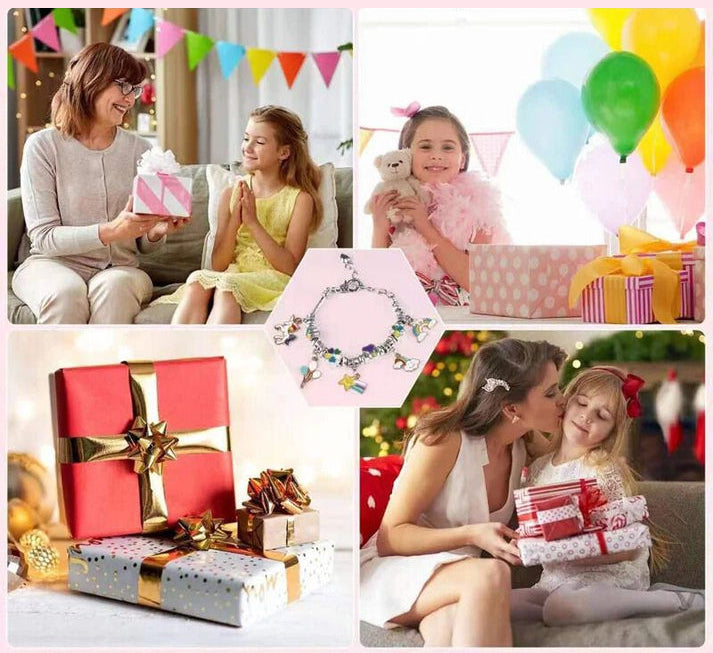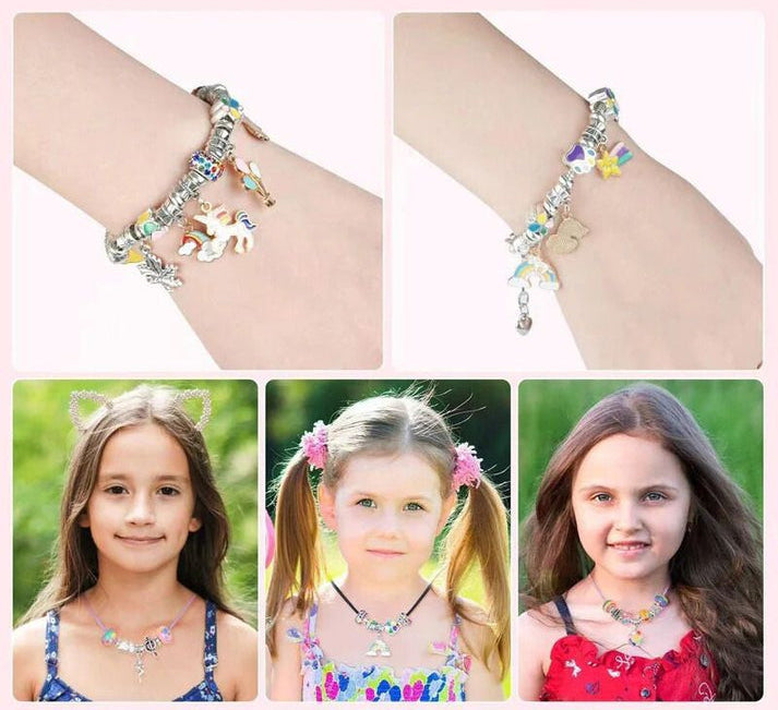 Halsbands- och armbandsset: med charmiga hängen som regnbågar, hjärtan, änglar, snöflingor, vingar och kronor – alla favoriter hos flickor.
