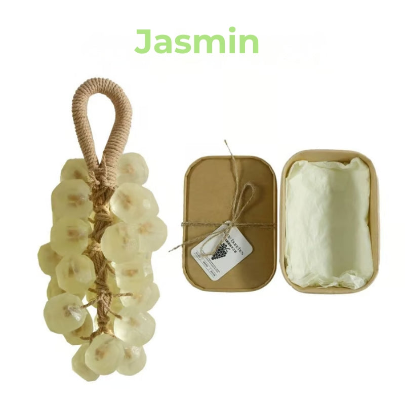 Denna handgjorda tvål sticker genast ut tack vare sitt vackra druvformade design. Den känns inte bara lyxig, utan fungerar också som en elegant dekoration i badrummet, toaletten eller sovrummet. Perfekt för personer som uppskattar hantverk, originalitet och en touch av stil.