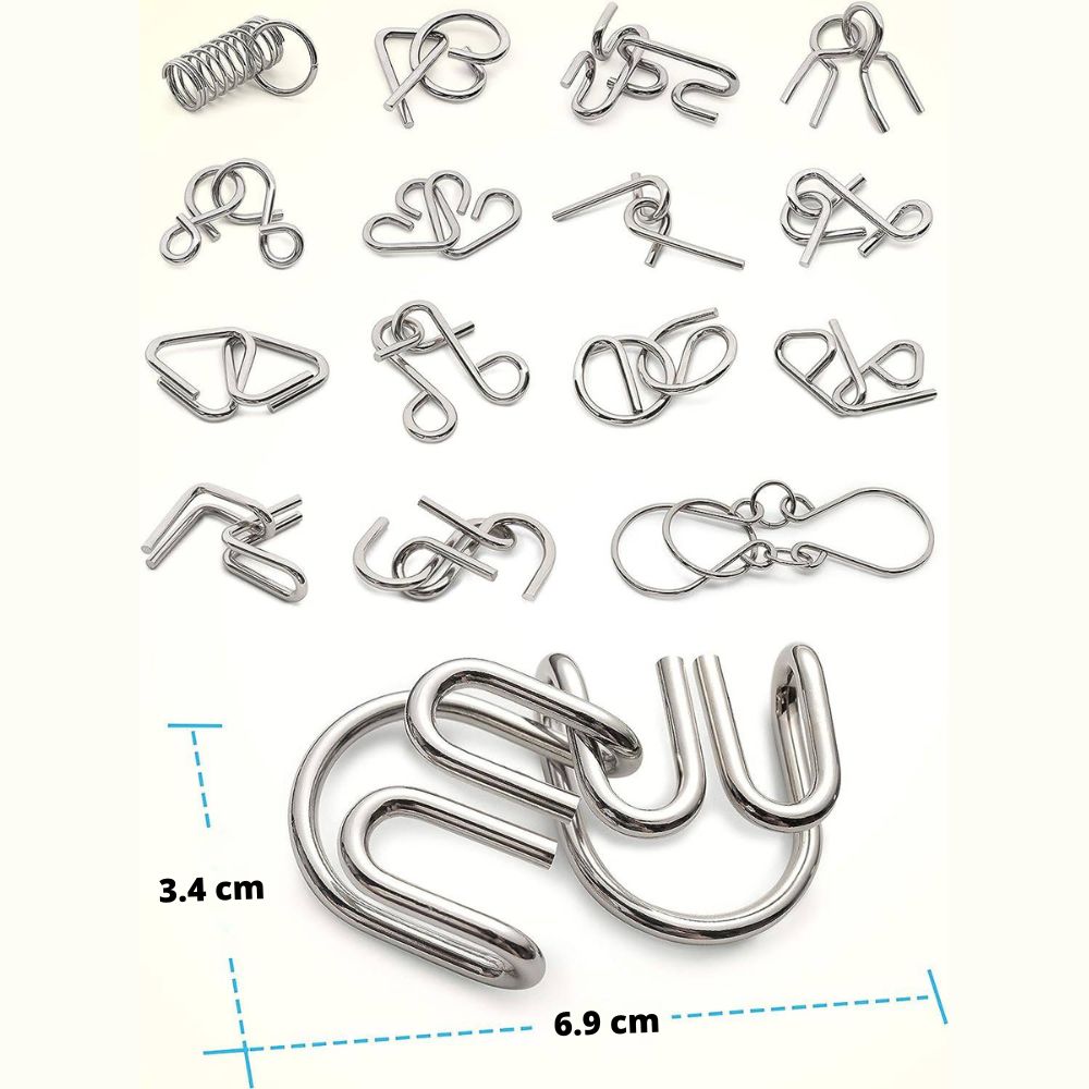 ✓ Paketet innehåller - 16 olika stilar av högkvalitativa metallpussel och en förvaringsväska.