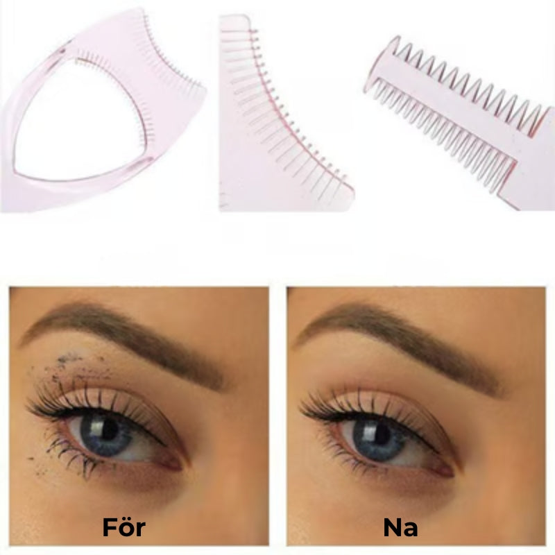3-i-1 ögonfransverktyg: Varje verktyg kombinerar skydd för övre och undre ögonlock samt en kam för fransarna. Ögonlocksskyddet är ergonomiskt utformat för att passa dina ögon perfekt, och kammens design underlättar appliceringen och separeringen av fransarna för ett felfritt resultat.