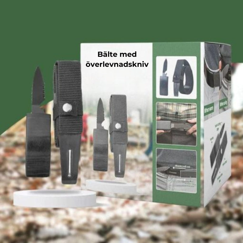 Denna innovativa bälte har ett dolt titanblad, en LED-ficklampa, en tändare och en flasköppnare. Den erbjuder diskreta men lättillgängliga överlevnadsverktyg för alla äventyr.