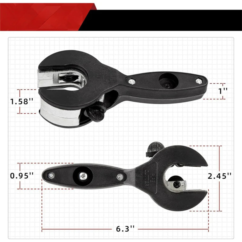 BRETT ANVÄNDNINGSOMRÅDE – Denna rörskärare är perfekt för att skära koppar-, PVC- och mjuka metallrör i trånga utrymmen. Den klarar enkelt rör med en diameter på 1/4 tum till 7/8 tum (6–23 mm), vilket garanterar precision vid varje skärning. Idealisk för VVS-arbeten, HVAC och husreparationer.