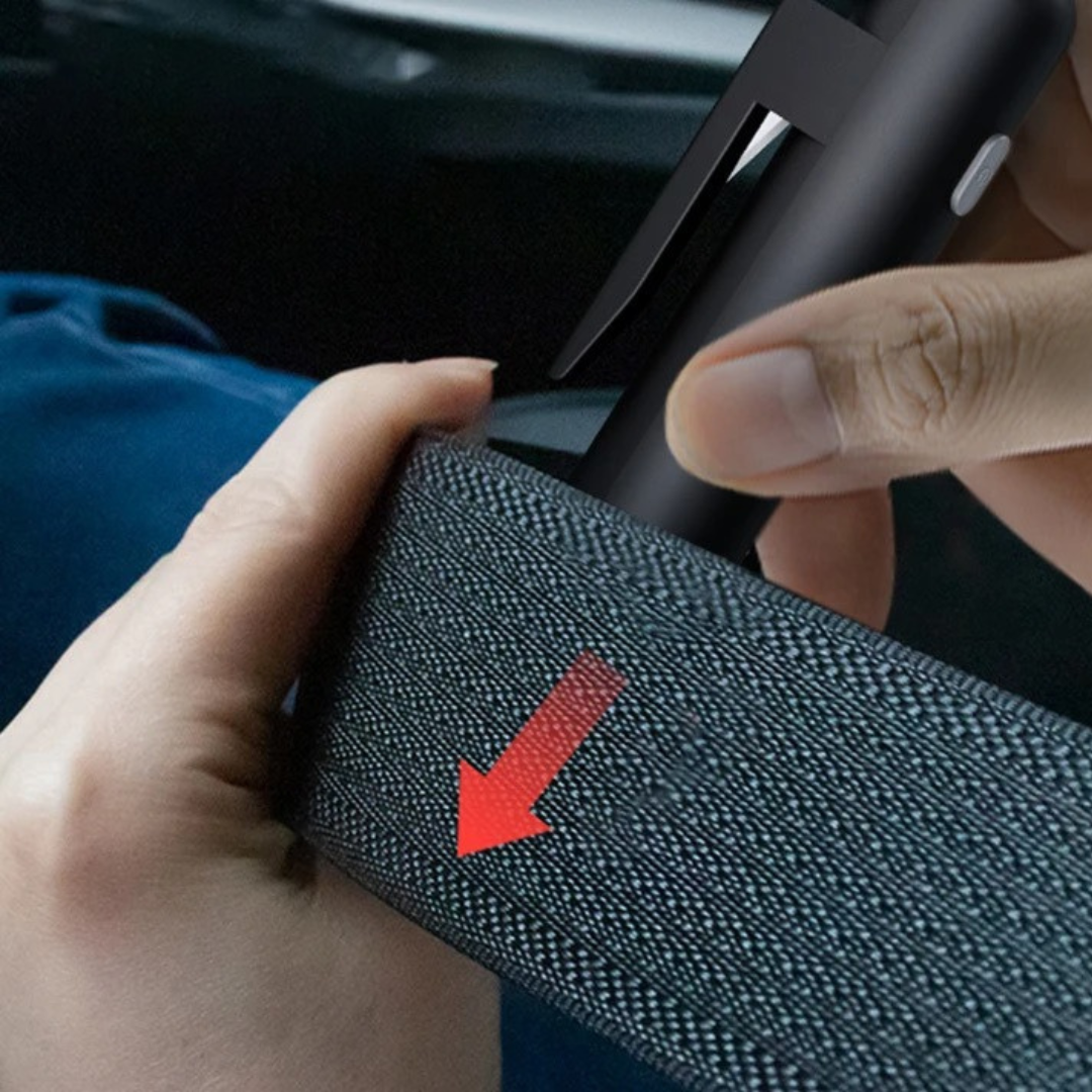 Om ett säkerhetsbälte fastnar kan situationen snabbt bli livsfarlig. SafetyTools vassa säkerhetsbältesskärare skär enkelt genom även de tuffaste materialen, så att du snabbt och smidigt kan ta dig ut i en nödsituation.