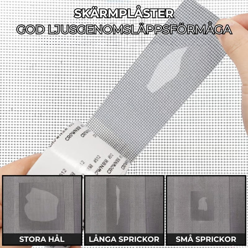 En utmärkt gör-det-själv-lösning som gör att du kan reparera alla revor på dina fönster- och dörrskärmar på nolltid! Bara att dra av, klippa av önskad längd, klistra på det skadade stället och klart. Med denna kan du enkelt reparera små till stora skador och hålla insekter och myggor borta.