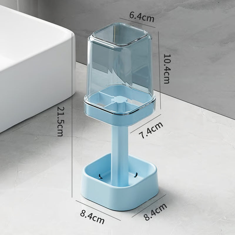 Med denna täckande tandborsthållare håller du dina tandborstar rena och skyddade mot damm, bakterier och andra föroreningar i luften. Locket ser till att dina borstar är förseglade när du inte använder dem, vilket bidrar till bättre munhygien och en fräsch badrumsmiljö.
