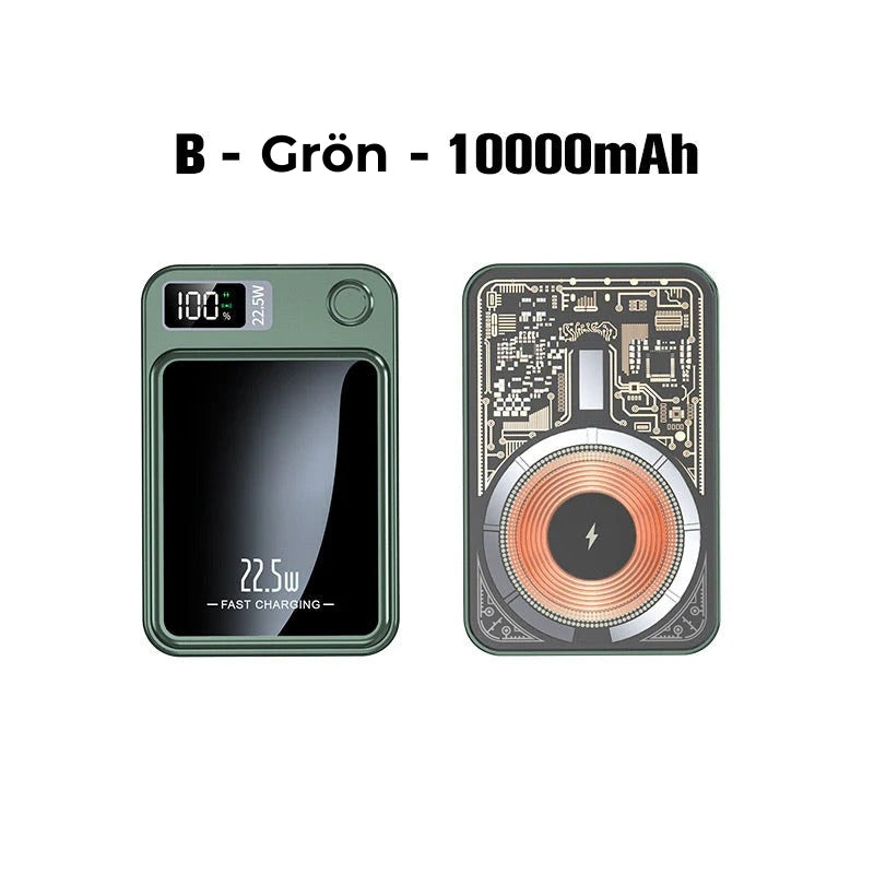 22,5 W ULTRA-SNABB LADDING – Upplev nästa generations hastighet! 22,5 W supersnabb laddning via kabel laddar enheter dubbelt så snabbt, medan 15 W trådlös laddning enkelt laddar Qi-kompatibla enheter. Med tvåvägsladdning laddas powerbanken helt på bara 1 timme. Perfekt för iPhone, Android och AirPods.