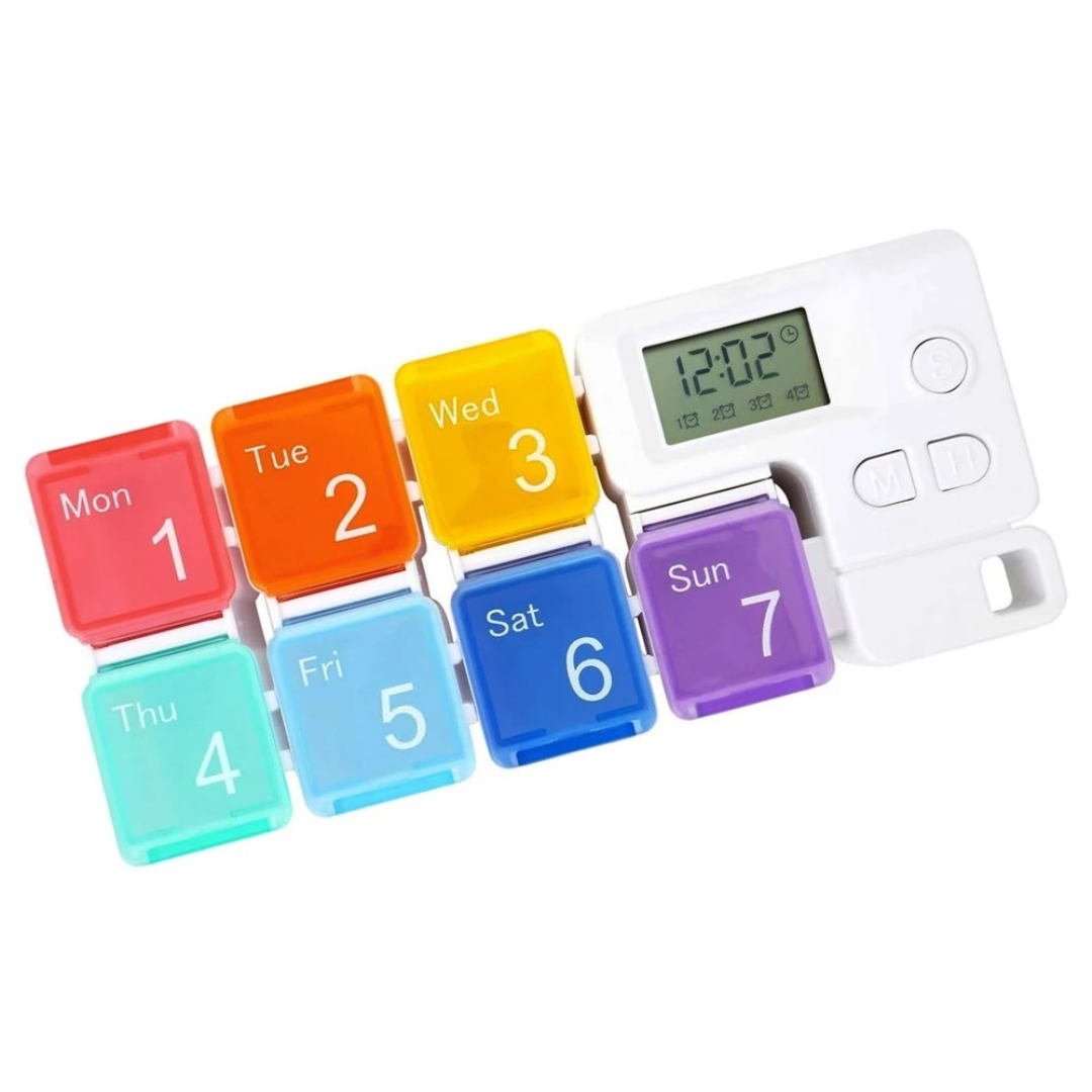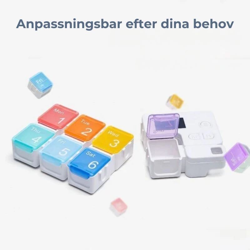 Ta din medicin lugnt och utan stress. Denna doseringslåda påminner dig i tid om varje dos och gör din rutin enklare, säkrare och mer konsekvent. Mindre glömska, mindre oro... och mer kontroll över ditt dagliga välbefinnande.